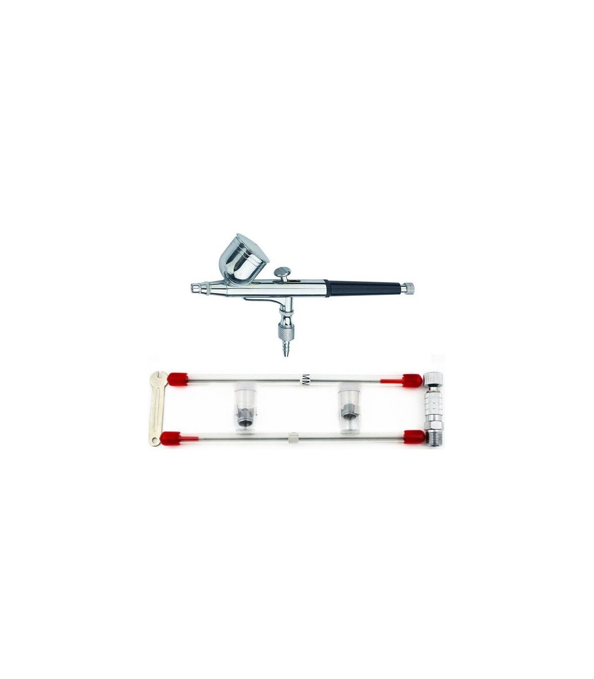 Aerógrafo Dismoer D-102 con 3 agujas intercambiables (0,2/0,3/0,5 mm) y regulador. Doble acción ideal para aerografía, modelismo y trabajos de precisión.