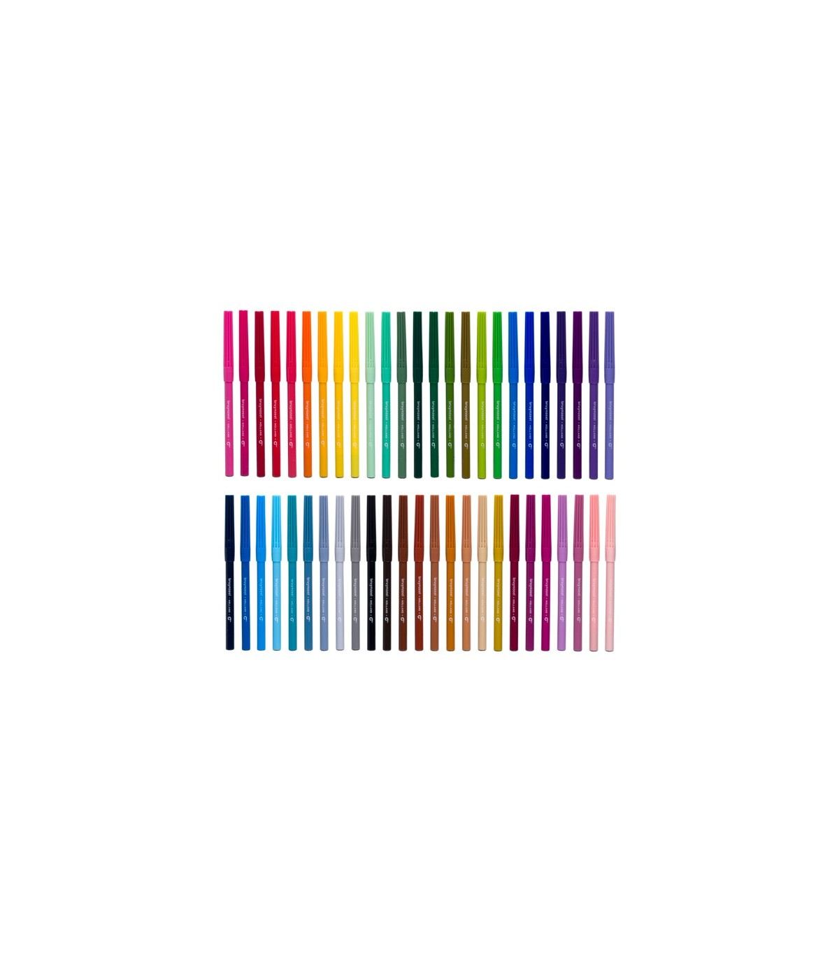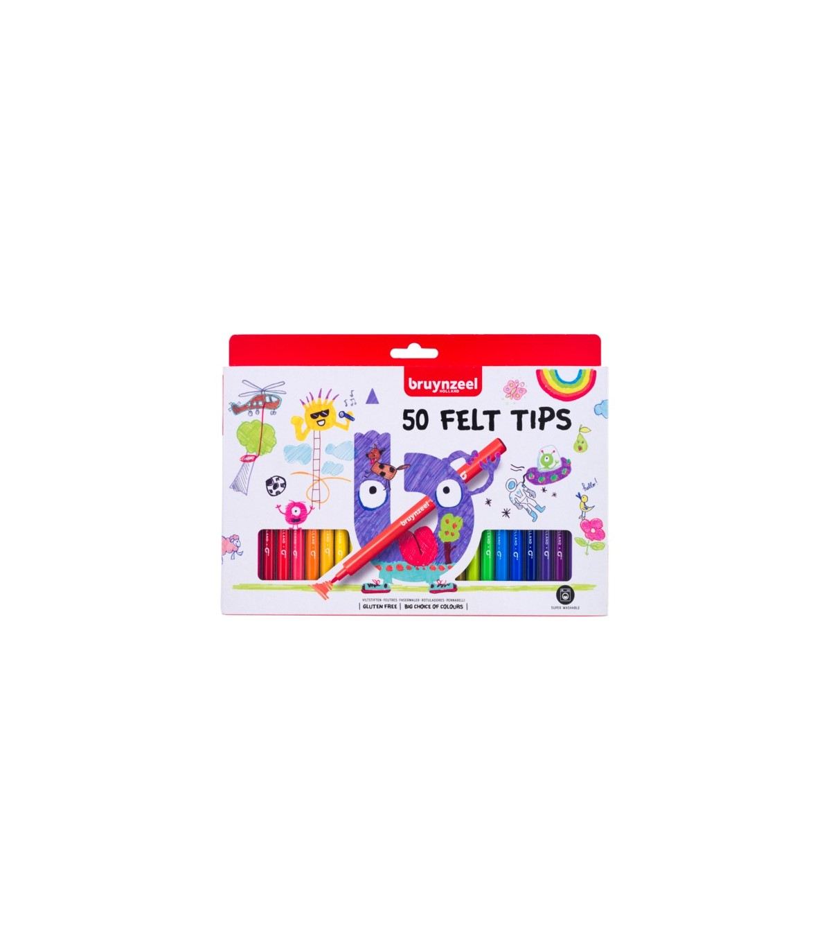 Con los rotuladores de alta calidad de Bruynzeel, puedes hacer los dibujos más hermosos y colorear las páginas más bonitas. Si no has usado los rotuladores durante mucho tiempo y se han secado un poco, puedes darles una segunda oportunidad sumergiéndolos en agua. El estuche de plástico dentro de la caja de cartón facilita la colocación de los rotuladores en la caja. Este estuche único contiene 50 rotuladores en casi todos los colores que puedas imaginar. Apropiado para niños a partir de 4 años.