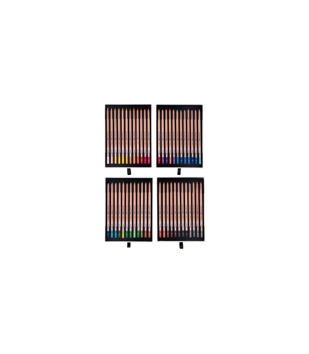 Contenido: 48 lápices pastel (01 Blanco – 75 Buff Titanio Claro – 19 Amarillo Nápoles – 21 Amarillo Limón Claro – 25 Amarillo Limón – 22 Amarillo Oscuro – 13 Ocre Claro – 16 Naranja Medio – 18 Anaranjado Permanente – 03 Rojo Pyrrole – 31 Bermellón – 36 Rosa Oscuro – 38 Camín – 92 Purpura – 53 Violeta – 30 Rosa Coral – 93 Violeta Azulado Claro – 52 Azul Turquesa – 26 Azul de Prusia Oscuro – 15 Azul Ultramar – 77 Azul Ultramar Claro – 20 Azul Ultramar Oscuro – 55 Azul Cobalto – 51 Azul Claro (Ciano) – 05 Azul Zafiro – 76 Verde Paolo Veronés – 06 Verde Paolo Veronés Oscuro – 28 Verde Olivo Oscuro – 64 Lima – 61 Verde Oscuro – 65 Manzana Verde – 60 Verde Claro – 07 Verde Fresco – 12 Ocre Oliva – 17 Siena Natural – 02 Pardo – 46 Sanguine – 24 Tierra de Siena Tostada – 04 Terracota – 45 Pardo de Habana – 08 Pardo Oscuro – 44 Pardo Medio – 81 Pardo Gris Medio – 10 Negro – 74 Gris Oscuro – 78 Gris Azulado – 88 Gris Frio Mate – 94 Gris Frío).
