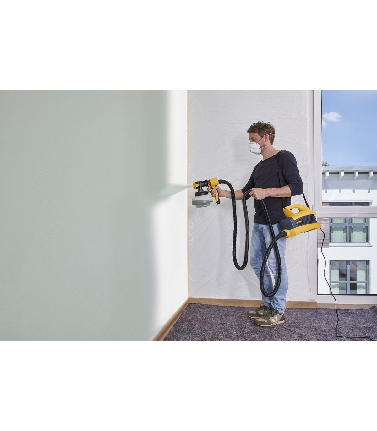 Con el W690 FLEXiO obtendrá dos sistemas de pulverización de pintura al precio de uno: sus dos cabezales de pulverización le permitrán utilizar el dispositivo tanto en proyectos de interior como de exterior. No importa si utiliza pinturas de paredes interiores, esmaltes o tintes: la uniformidad de la capa de pintura garantiza siempre unos resultados brillantes, incluso en superficies complicadas. El innovador cabezal I-Spray atomiza perfectamente las pinturas de paredes interiores y garantiza una aplicación uniforme con una cobertura perfecta. El chorro de pulverización tiene varias opciones de ajuste y la cantidad de aire se puede regular de forma continua. Con el cabezal Standard para esmaltes y tintes, obtendrá incluso un chorro puntiforme: para una aplicación rápida y perfecta de la pintura.